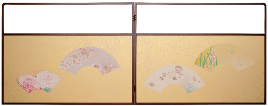 現在は制作三昧の日々ですが、近年はJRデスティネーションキャンペーン「京の冬の旅」にて本法寺の堂本印象や狩野山楽の襖絵を前にポスター出演をさせて頂きましたり、雑誌等で京都で出会える名画や画家ゆかりの場所を紹介するお仕事、京都の老舗、宮脇賣扇庵さんとの季節の扇子制作など京都ならではのお仕事もさせていただいています。