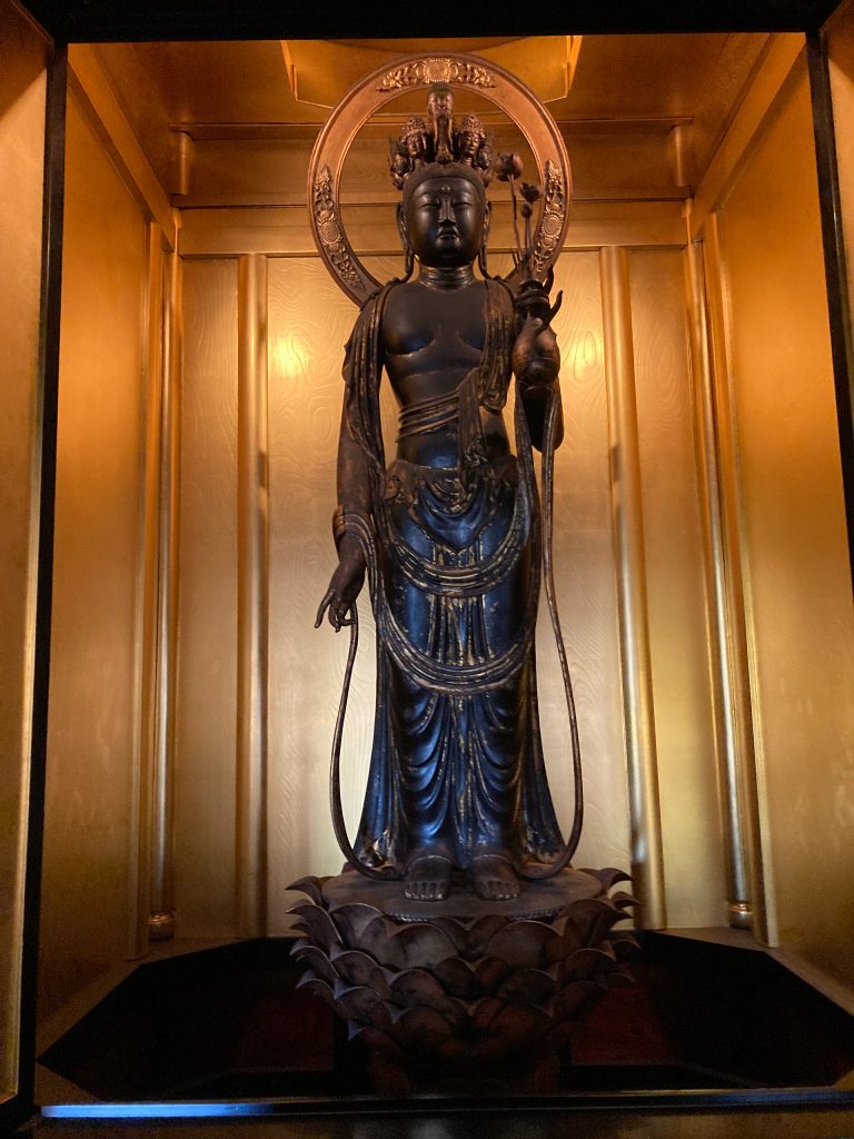 さらに木津川の支流、普賢寺川が流れる京田辺市には、古寺の趣の大御堂観音寺がある。隆盛を誇ったころは33もの伽藍が立ち並ぶ寺勢を誇っていたという。本尊は国宝の十一面観音。天平彫刻らしく、きりりと整った精悍な顔立ちと、肉付きがよく、それでいてすっきりと締まった体躯はずっと見ていたくなるほど幻想的で美しい。