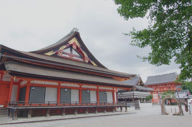 2020年12月、国宝に指定された八坂神社の本殿。「祇園造り」と呼ばれる複雑な内部構造を持ち、神社本殿建築としては日本最大級の規模を誇ります。この場所に本殿が築かれたのは、平安京の真東に位置し、青龍(せいりゅう)の宿る龍穴があるという伝説から。事実、八坂神社の地下には水脈が走り、境内では各所から御神水が湧き出ています。龍の正体は、この水脈でしょうか。