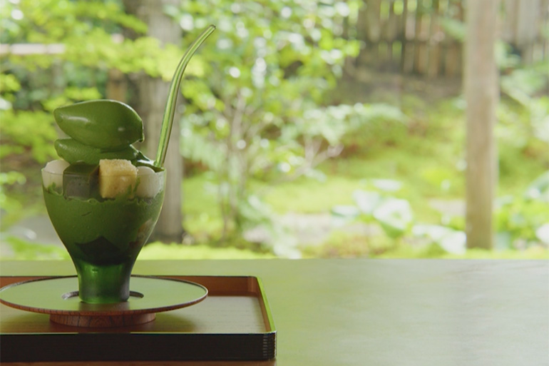 京都・大阪を対象としたミシュランで三つ星を獲得した経歴を持つ名料亭「菊乃井(きくのい)」がプロデュースするサロン「無碍山房(むげさんぼう)」は、深みのある濃い抹茶のパフェや作りたての本わらび餅が名物。ここでは、デザートを作るのもパティシエではなく料理人。京料理の技法や文化に精通した料理人が、抹茶をたて、小豆を炊いて餡(あん)を作り、わらび餅は提供直前に練りあげて作るというスタイルで、もっともおいしい瞬間でもてなします。