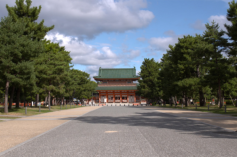 岡崎のランドマーク「平安神宮」の「神苑」は、紅枝垂(しだ)れ桜の名所。桜の雨が降りしきるような春の庭は、それはそれは美しいのですが、桜のない季節に訪れると庭園自体の構成美が際立ちます。