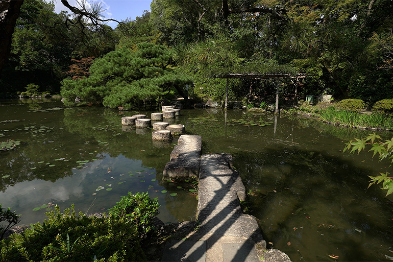 紅葉を愛(め)でるにはやや早い、初秋の京都。けれど、日本庭園を味わうにはもっとも適した季節といえるかもしれません。満開の桜や深紅のもみじはパッと目を引きますが、庭園全体の景色や構成は「背景」になってしまう。少しずつ色づきはじめる木々を眺めながら庭園の輪郭をなぞるようにじっくりと歩けば、ちりばめられたさまざまなメッセージに気づきます。