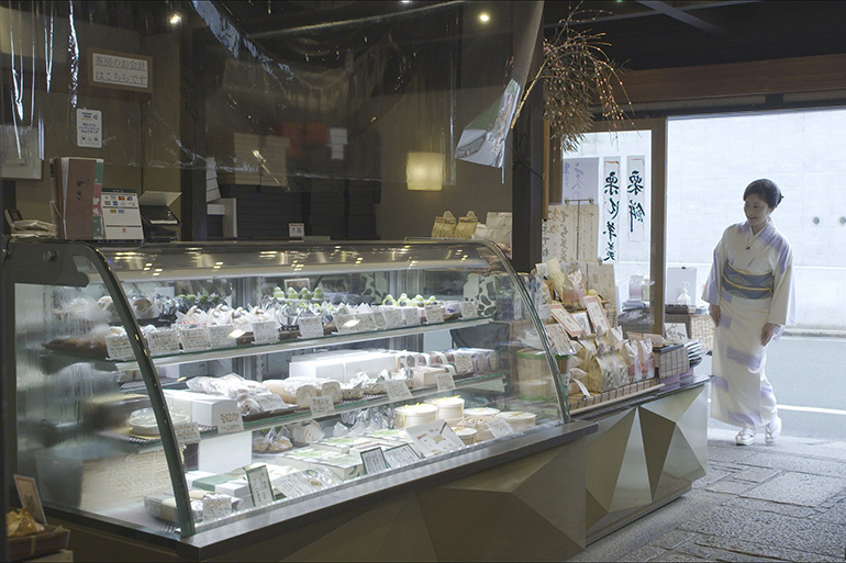 今でこそ大人気の「絹ごし緑茶てぃらみす」ですが、この味わいと形に行き着くまでは、試行錯誤の連続。実家が豆腐料理店という恵子さん得意の豆乳スイーツと、英昭さんが受け継いできた和菓子の技をどう生かすか。素材は何を使うか。どのようなビジュアルにするか。箱庭のような形は、和菓子屋ならではのやりとりから生まれました。