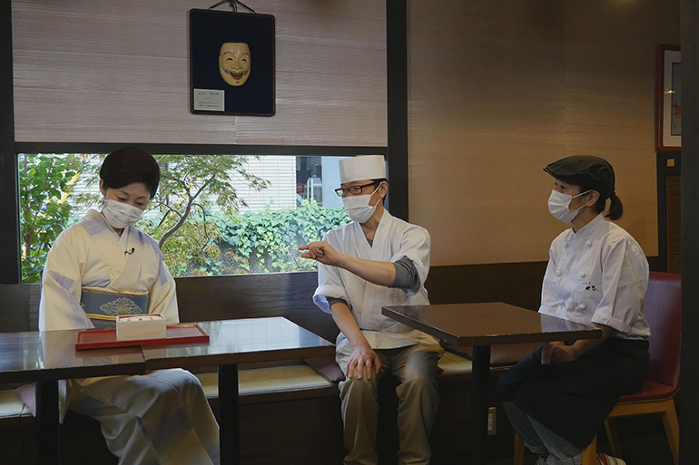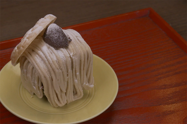 和菓子と洋菓子、それぞれのアイデアと技術を理解し合いながら、英昭さんと恵子さんは常に新しいお菓子を考えています。英昭さんの好物のざる豆腐にヒントを得た、わらび餅と生クリームを合わせた「ざるわらび」、名物の「でっち羊かん」の栗蒸し入りをモンブランと重ねた「栗蒸しモンブラン」など、一口食べては驚き、どこに何が使われているのか想像がふくらむものばかり。