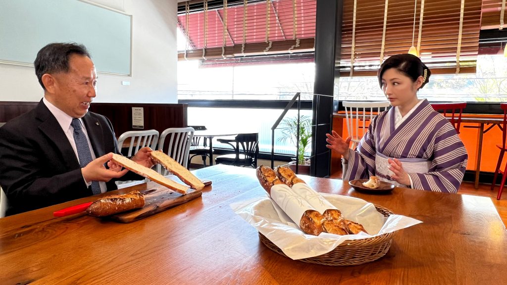 創業者が1924年、パン修行のためフランスへ留学。 パリから戻った初代が、日本でまだ馴染みの薄い本格的なフランスパンを研究し、製造販売を開始しました。3代目の続木創さんが常盤さんにおすすめしたのは、創業者が留学した当時の原点に返って開発したという看板商品の「レトロバゲット“1924”」。表面はカリッとして、中はしっとり。噛めば噛むほど小麦本来の甘味が口中に広がり、常盤さんも「毎日食べても飽きない」と大絶賛。