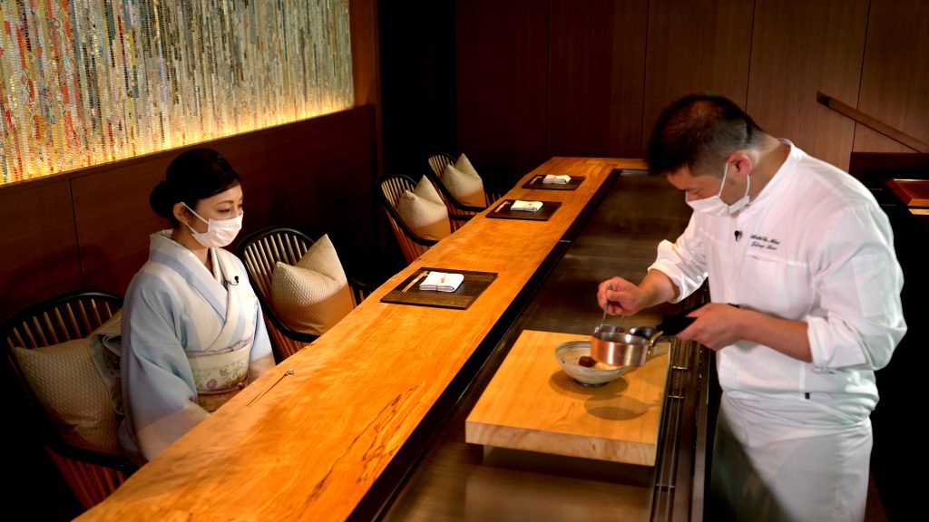 そしてホテルステイの楽しみで欠かせないのが、食。日本料理、イタリア料理、バー&ラウンジなど、HOTEL THE MITSUI KYOTOにはクオリティーの高いレストランがあります。なかでもイノベーティブ(=革新的)な料理を提供する「都季」は、海外の一流ホテルで研鑽を積み、フランス料理界の巨匠アラン・デュカスに師事した浅野哲也さんが料理長を務めます。鉄板を舞台に、秘められた素材の力を存分に引き出すのが浅野さんの手腕。フランス料理と日本料理を昇華させた品々は、食べる者を新境地へと誘います。