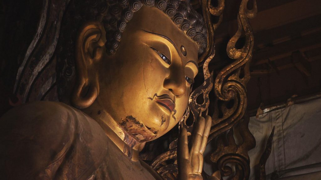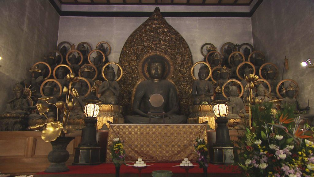 後堀河天皇の勅願所だった戒光寺の本尊は約5・4㍍の釈迦如来立像。首のあたりに流れたように見えるのは血の跡といわれ、後水尾天皇の即位争いの身代わりになったという逸話から「身代わり丈六さん」とも。運慶、湛慶親子の合作だ。